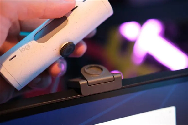 最后,Brio 500 有一个有趣的磁化显示器安装机制。它由两部分组成。有一个标准的塑料支架,设计用于像平常一样夹在显示器的顶部,然后网络摄像头本身通过磁性连接到这个塑料支架上。这种设计意味着您可以选择将网络摄像头旋转 360 度。如果您不喜欢磁铁,则可以从网络摄像头底部拧下磁性支架,露出标准三脚架支架。