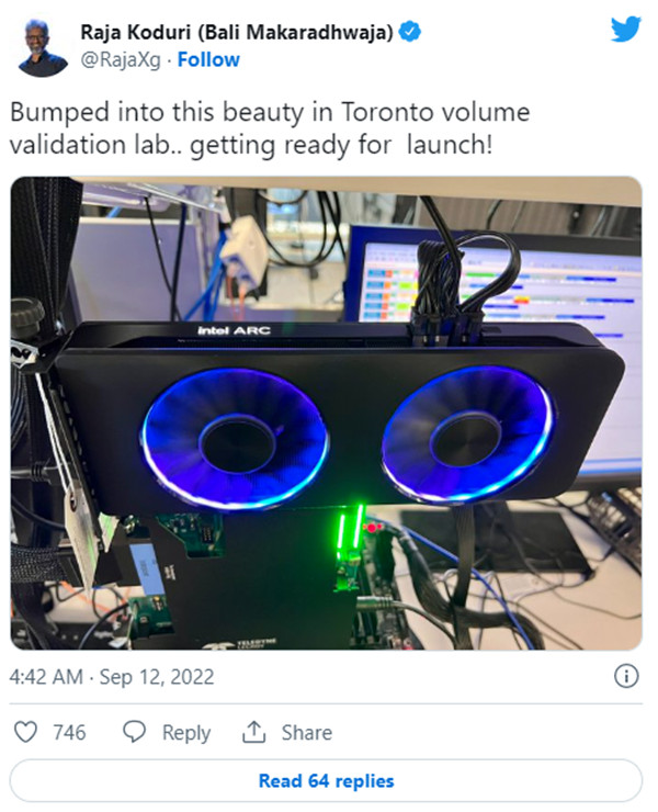 英特尔的GPU负责人证实,该团队正在努力推出Arc GPU,并且确实存在比计划更多的障碍。但随着 Arc A770 GPU 现在在英特尔实验室进行发布验证,这些都结束了。