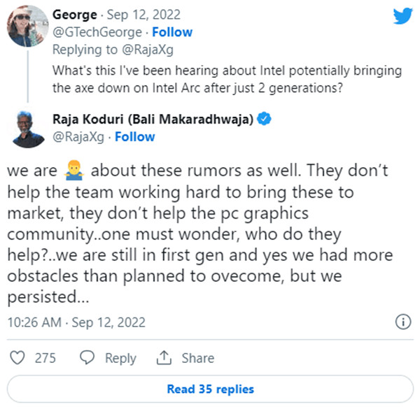 据外媒videocards报道,拉贾·科杜里终于对Arc GPU的发布发表了评论,在过去的几个月里,它已经出现了无数次延迟。