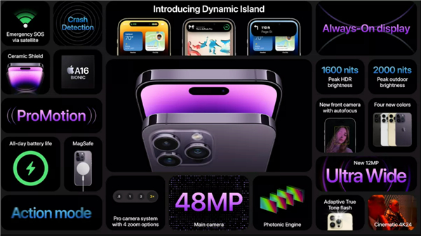 苹果表示A16是有史以来最快的手机处理器,比竞争对手产品高出40%(没指明哪款),跟自家产品对比的也不是A15,而是三年前的A13处理器,可见苹果之心虚。