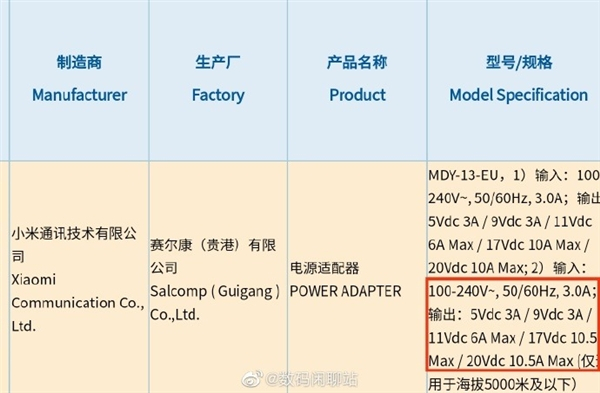 这也就意味着,小米210W功率的超级闪充充电器已经获得了认证,相关技术可能已经基本落地完善。