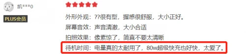 当然,也有用户说到了续航和充电体验,这款OPPO Reno8全系都配备了4500mAh大容量电池,支持长寿版80W超级闪充,在续航时间和充电速度上均达到了旗舰级别的使用体验。而在用户的评价中也可以看到:“电量真的太耐用了,80w超级快充也好快”等评价,可谓是解决了续航焦虑症。
