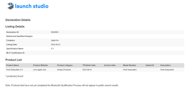 据 MacRumors 今日报道,苹果提交到蓝牙技术联盟的文件提到了蓝牙 5.3 主机子系统,该文件大概率是为苹果未来的产品做准备。此外,该文件实际上应该是指蓝牙 5.2,因为苹果在蓝牙技术联盟数据库列出的蓝牙版本往往比设备最终支持的高一个版本。