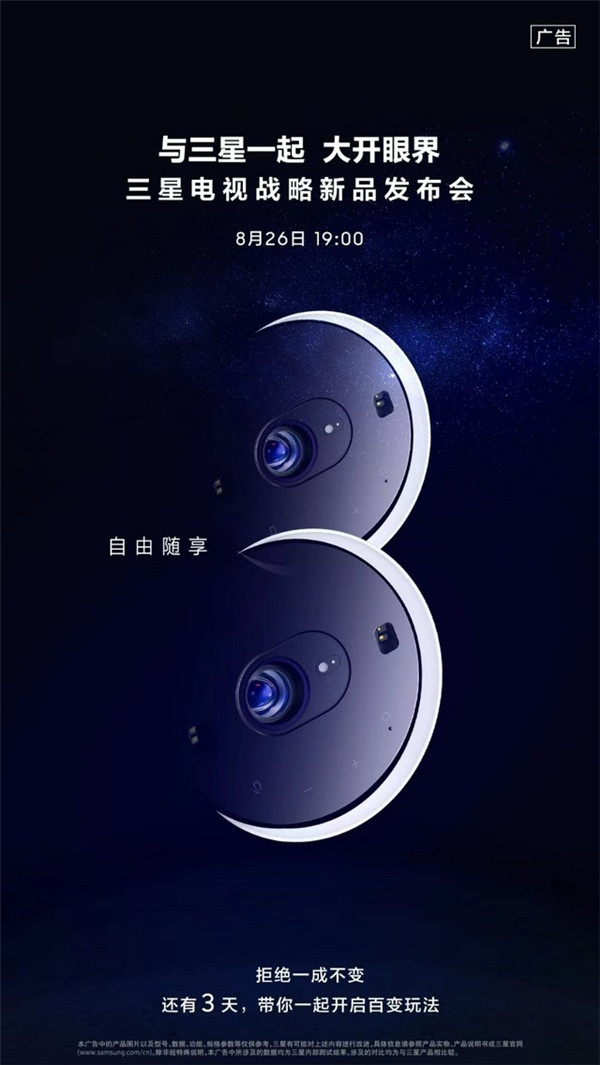 三星官方同期发布了2022战略新品发布会预告,预计预售中的2022新款Lifestyle电视等一系列新品将在8月26日19:00的发布会中推出。预售期间,三星网上商城提供100元定金抵500元使用、赠送三星BudsLive耳机等福利,参与预约登记并购买产品的消费者根据购买的型号,可额外获赠纤薄贴合壁挂架等。有电视换新需求的消费者不妨先到三星网上商城了解产品,并关注即将召开的三星电视新品发布会。