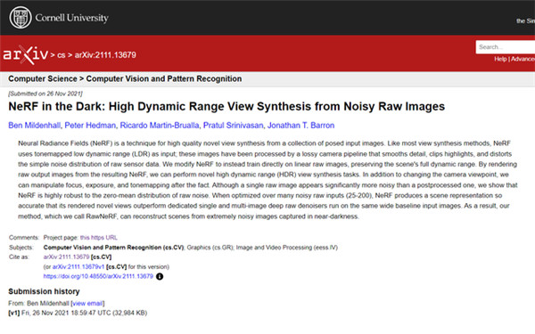 该技术的论文于 2026 年 11 月发表,也在 Github.io 上有主页,名为《NeRF in the Dark: High Dynamic Range View Synthesis from Noisy Raw Images》。