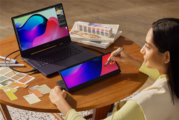 内容创作者可将 ProArt Display PA147CDV 作为笔记本电脑的副屏,然后用手写笔在触屏上做笔记或素描。