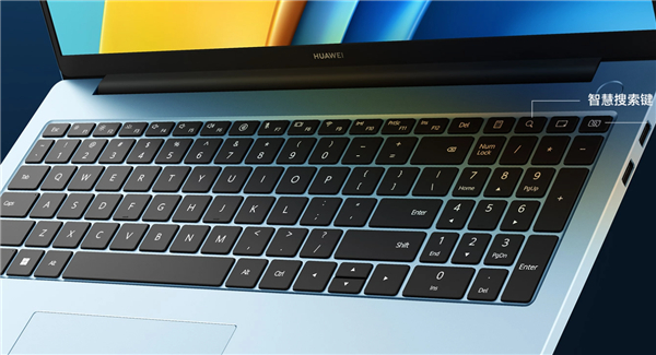 华为MateBook D 16 SE键盘采用1.5mm高键程设计,配备数字小键盘和保护隐私的独立摄像头开关以及智慧搜索键。