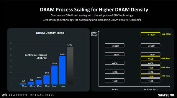 当然,单条1TB对消费级用户来说成本太高,未来几年没有实用的可能,但三星跟AMD合作的主要是服务器级应用,Zen4架构的EPYC 7004系列可以做到96大核或者128核小核,对内存的需求也更高了,三星超大容量的DDR5内存也是为这些系统准备的