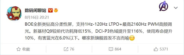 8月17日消息,博主数码闲聊站暗示,华为Mate 50系列首发京东方全新柔性屏。这块屏幕采用类钻排列,采用LTPO技术,支持1-120Hz刷新率自适应,比肩苹果iPhone 14 Pro系列的ProMotion,后者也可以做到1Hz刷新率,支持息屏显示。