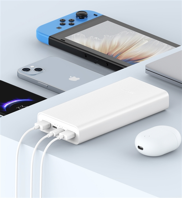 20000mAh超大容量,可为手机多次充电,为iPhone 13充电4次,为小米12充电3.3次,为Redmi K50电竞版充电3次,为小米平板5充电1.7次。