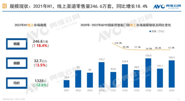 智能锁正在以极快速度走进千家万户,7月27日,咨询机构奥维云网发布《2022年H1中国家用智能门锁线上市场总结报告》。报告显示,中国家用智能门锁线上市场上半年总销量为246.6万套,同比增长18.4%;销额为32.7亿元,同比增长3.5%,发展势头迅猛。