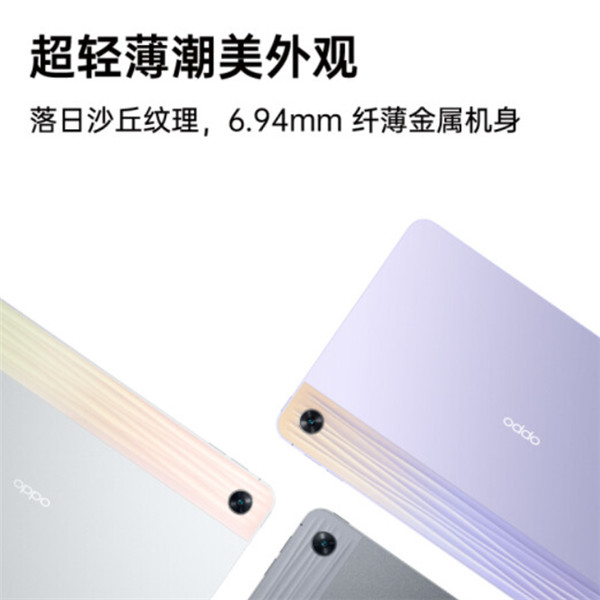 OPPO Pad Air 平板电脑拥有 6.94mm 金属机身,重 440g,采用 10.36 英寸 2000×1200 分辨率 LCD 屏,支持 60Hz 刷新率与 2048 级智能背光调节,通过德国莱茵 TV 低蓝光护眼认证。