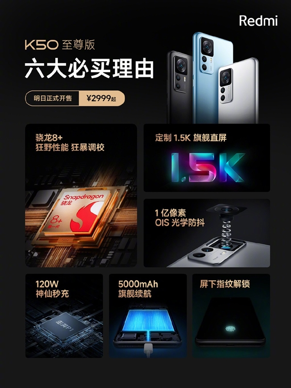 不过,相比于8999元起售的“万元”旗舰来说,Redmi K50至尊版显然对于普通人更有吸引力。
