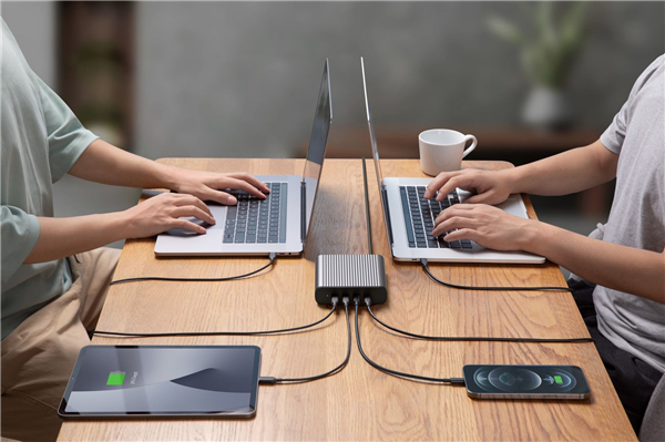 用户可以一次为 4 台笔记本提供 60W 充电功率,也可也为 2 台 100W 笔记本充电,同时为 iPad Pro 和 iPhone 充电。根据插入设备的不同,245W 功率会进行分配。