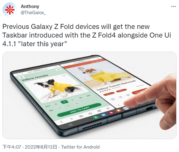 此外业内传闻称,新版 OneUI 4.1.1 软件更新,也将于“今年晚些时候”登陆老款 Galaxy Z Fold 产品线。