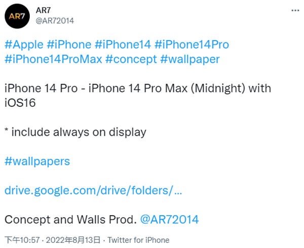 此前,网络上已经流传过 iPhone 14 的大量传闻和 CAD 图纸,让我们对这代新机有了初步的了解。而随着苹果秋季发布会的临近,平面设计师 @AR72014 也于近日在 Twitter 上分享了“运行 iOS 16 的 iPhone 14 Pro”智能机的概念渲染图。