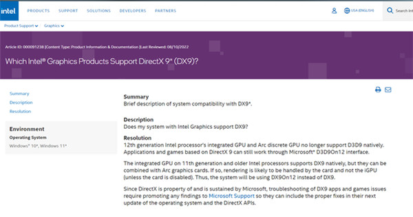 8 月 15 日消息,原生 DX9 硬件支持已正式从英特尔第 12 代 CPU 中 Xe 集成图形解决方案 和 A 系列 Arc Alchemist 独立 GPU 上消失。英特尔表示,所有对 DirectX 9 支持将转移到 DirectX 12 仿真模式。