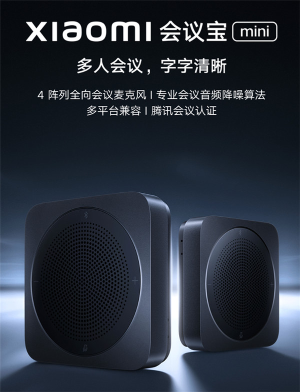 据小米介绍,小米会议宝 mini 专为多人会议设计,通过了腾讯会议认证。该机采用小巧金属机身,适用于居家、办公、出差等场景。