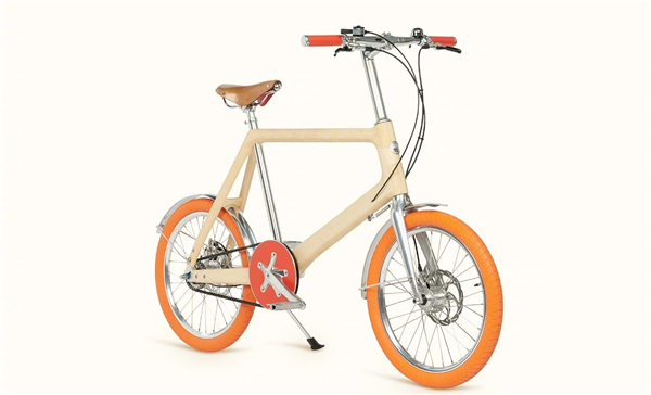 采用白蜡木、铝和Spad皮革打造, 把手及坐垫支架处配有车灯,前侧饰有系列标识上釉徽章,坐垫处饰有“Hermes Paris”烫印字样,同时配有前后车篮子,支持4挡速度调节。