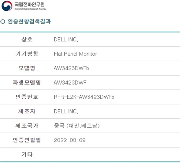 型号为AW3423DWF的外星人QD-OLED显示器已通过相关机构认证,据信将于近期面市:“F”后缀也许指明了该显示器是之前曲面屏的平面型号(Flat),这对于那些不喜欢曲面屏的用户来说是一个好消息,除非平面型号有大幅溢价。