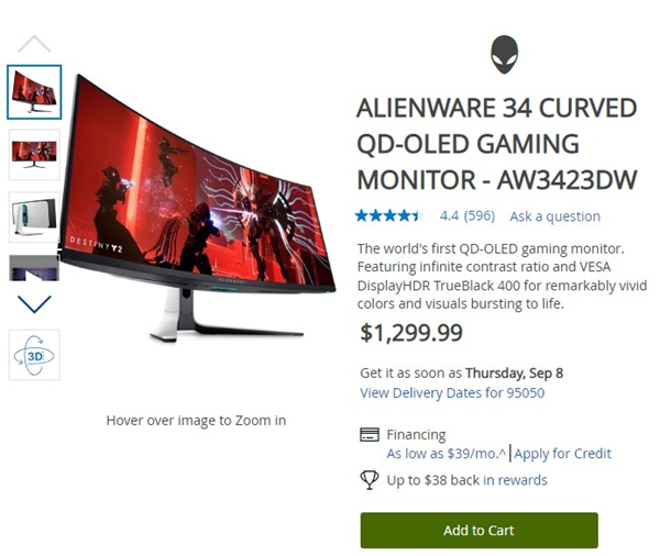 目前AW3423DW的官价仍为1300美元,规格为3440x1440准4K曲面屏,由于平面型号与曲面屏仅有一字之差,估计产品规格不会有较大变动,对外星人有好感且对硬G有刚需的玩家仍需耐心等待面板厂商陆续挤出新牙膏。