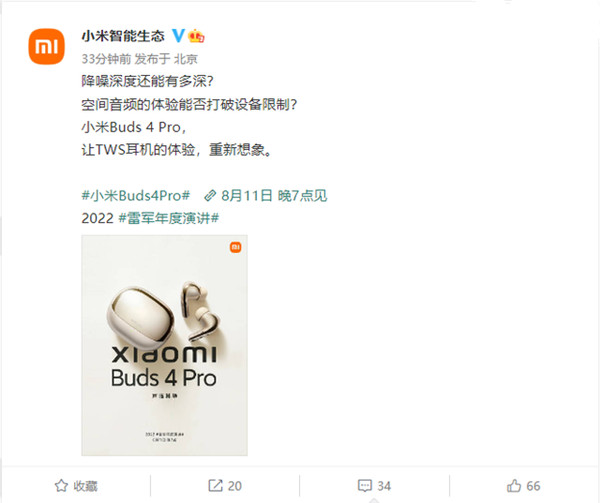 8 月 9 日消息,8 月 11 日晚 7 点见小米创始人雷军将举办 2022 年度演讲,届时还会发布众多新品,除了 Redmi K50 至尊版、小米 MIX Fold 、小米平板 5 Pro 12.4 英寸版之外,还有一款小米 Buds 4 Pro 真无线降噪耳机。