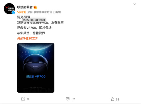 今天,联想拯救者正式官宣新品VR700,不过没有给出具体的发布时间,但猜测应该用不了多长时间就会发布。