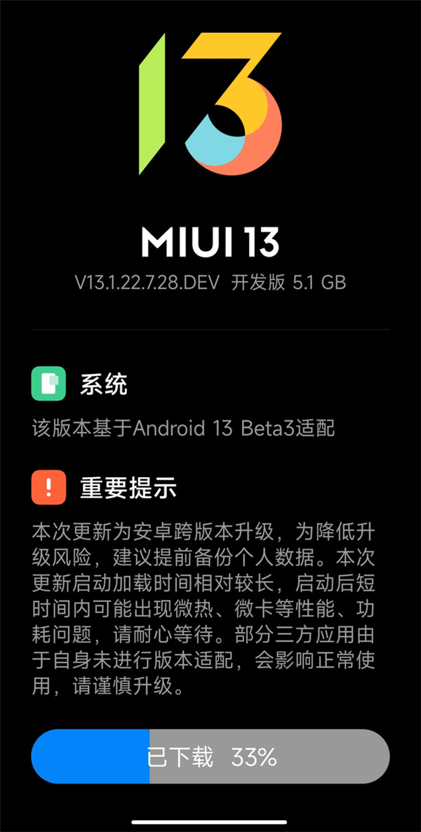 目前安卓 13 与多款银行类 App 存在不兼容的问题,而且仍旧存在许多 Bug,还请酌情考虑安装更新。