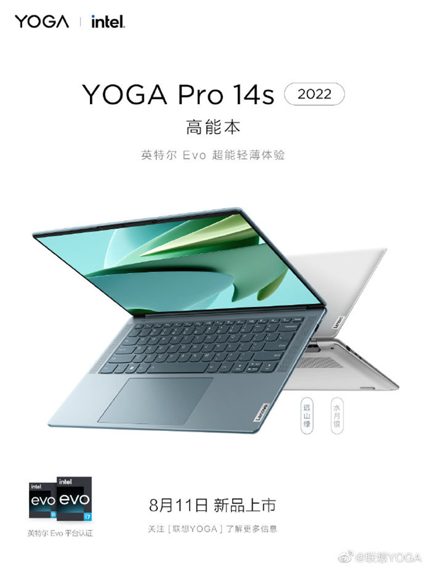 今天,联想公布了 YOGA Pro 14s 高能本 远山绿新配色和 YOGA 14c 翻转本新笔记本,将于 8 月 11 日发布。