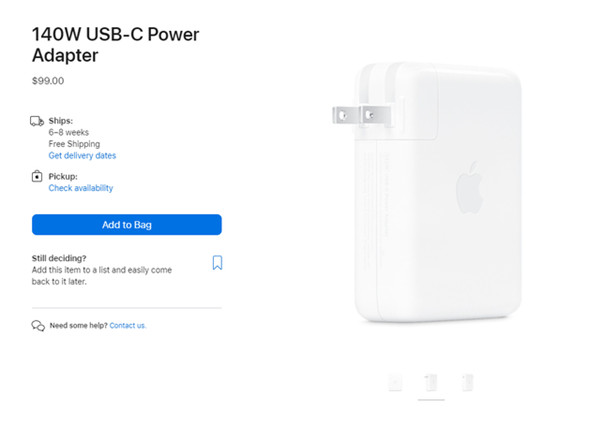 长期以来,苹果的高功率电源适配器一直供不应求。2021 年 9 月,96W 适配器在漫长的 2-3 个月后发货,而适配器在近一年后仍然遇到供货问题。