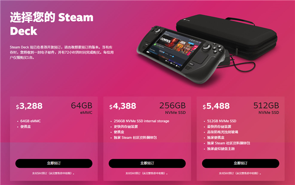 Valve今日宣布将与Komodo合作,将新增日本、韩国、中国香港、中国台湾四个Steam Deck销售地区,现已开放预定。港版定价为64GB版本3288港币、256GB版本4388港币、512GB版本5488港币,首批机器将于今年晚些时候发货。