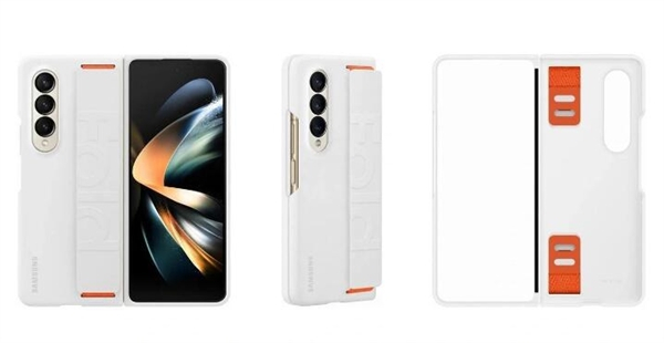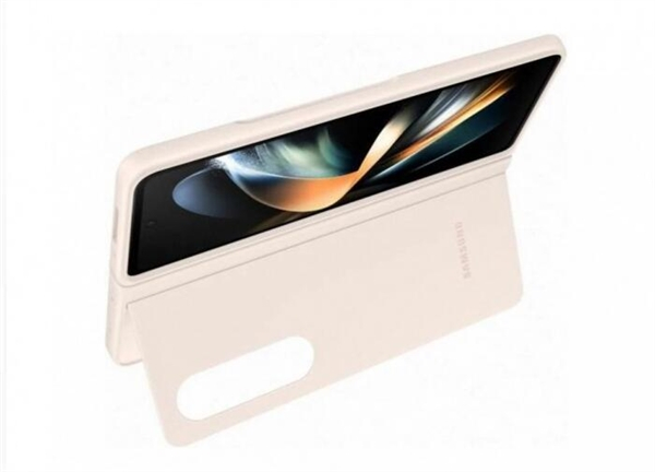 此外,Fold4还有一款超薄站立式保护壳,背面有一个细长的脚架,可以用任一个角度固定手机。不这款手机壳没有配备S Pen的插槽,需要其他地方进行存放。