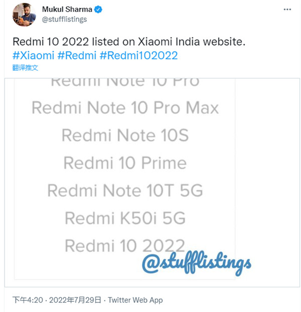 据Mukul Sharma 爆料, Redmi 10 2022 的设备出现在小米印度网站上。但是除了名称之外没有其他信息,并且他考虑到没有提及 5G,所以他猜测这可能是一款 4G 手机!