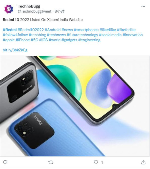基于今年早些时候,小米 Redmi 10 和 Redmi 10A在印度非常受欢迎的市场形势下,小米另一款 Redmi 10 系列手机也将登陆印度市场。