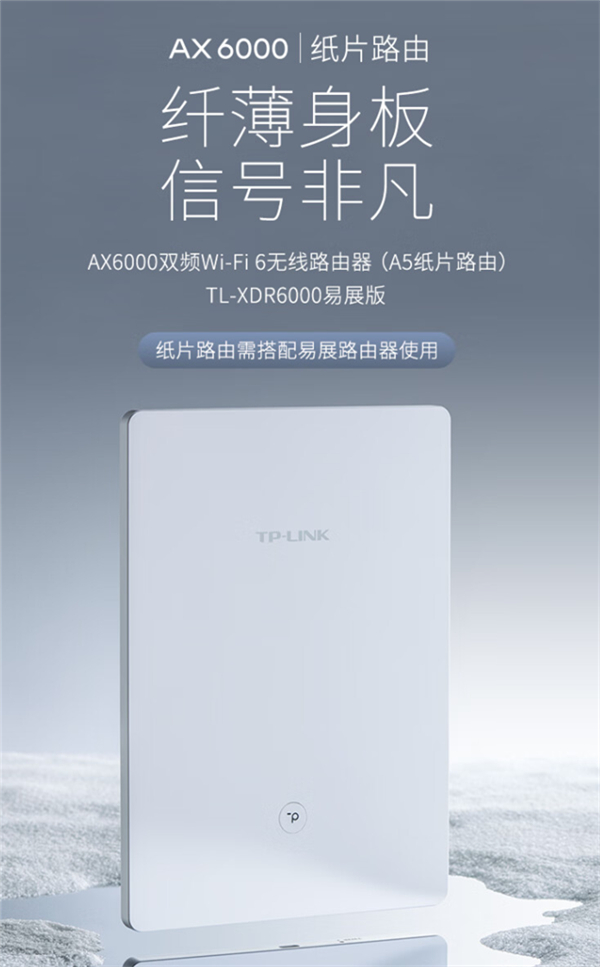 日前,TP-LINK纸片路由AX6000规格正式发布,到手价529元。