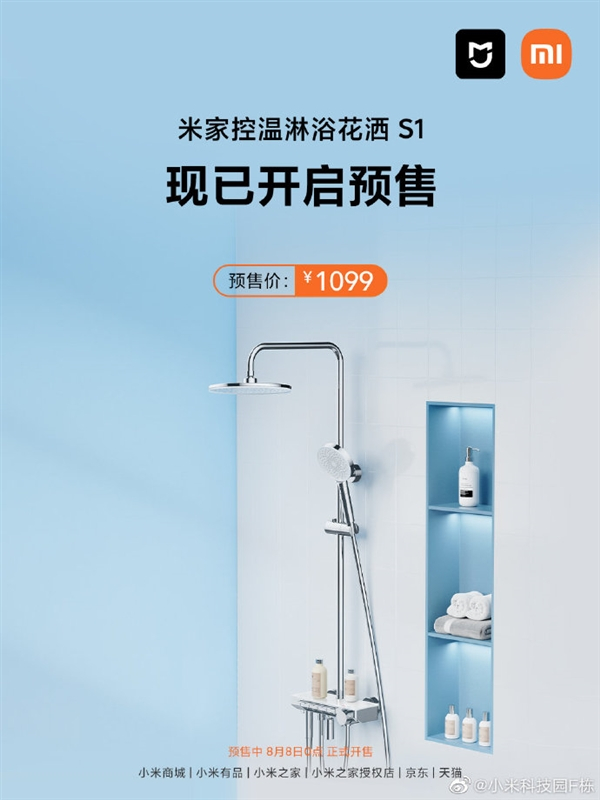 8月1日,米家首款卫浴系列S1发布,并开启预售,将于8月8日正式开售。