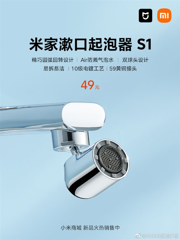 4、米家漱口起泡器S1,售价49元。特色:旋转用水角度,上涌漱口超酷