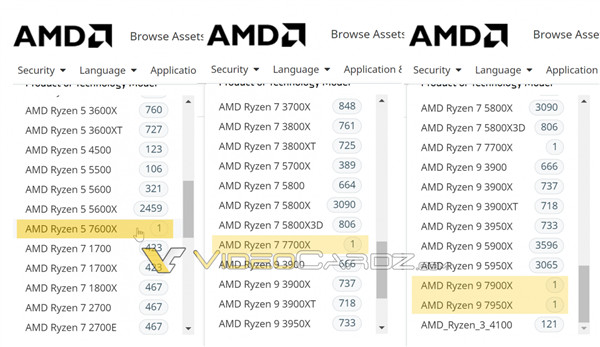 近日网友在AMD官网资源库中发现了即将发布的四款锐龙7000的信息,分别是Ryzen 9 7950X;Ryzen 9 7900X;Ryzen 7 7700X;Ryzen 5 7600X。