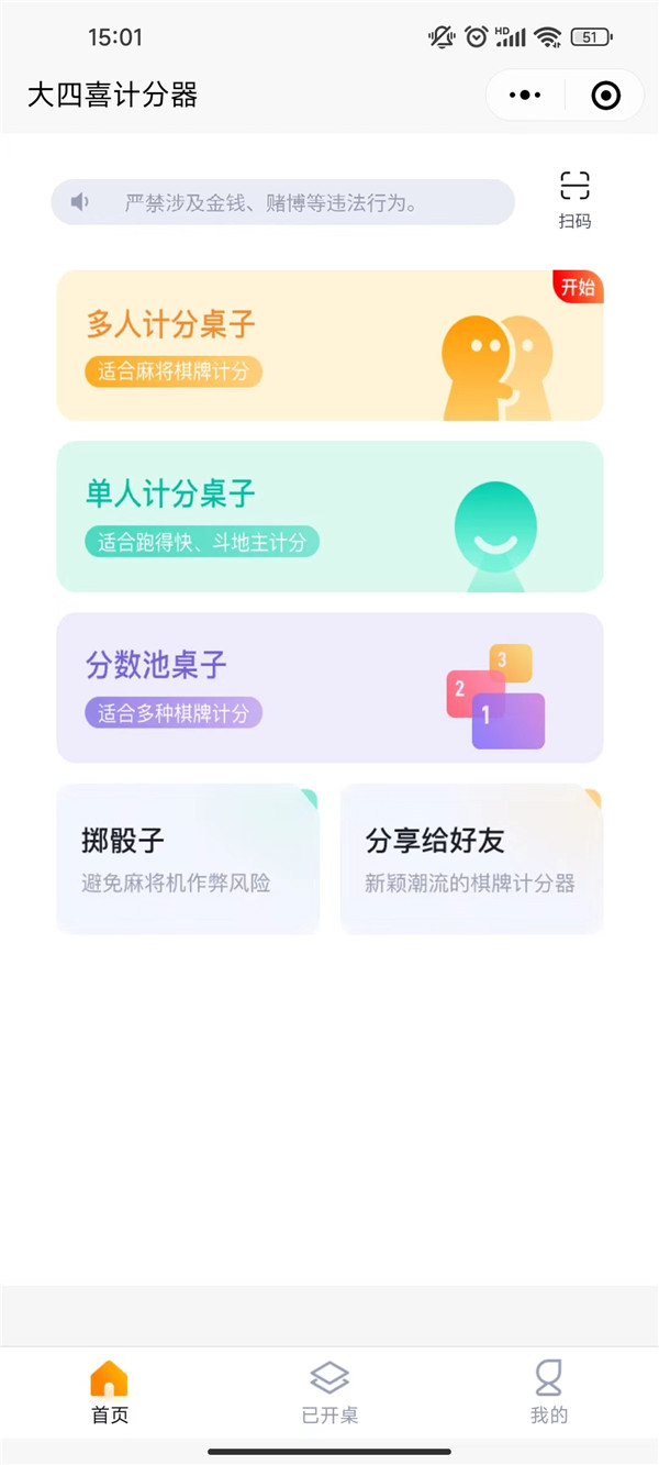 更多功能可以进入微信小程序里面搜索大四喜计分器体验,也可以直接微信扫描上图进入,有需要的朋友记得关注下。