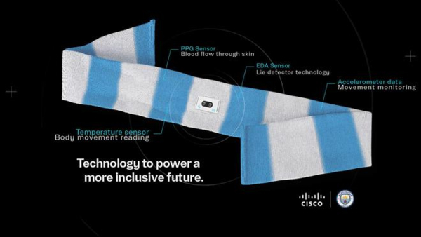 对于足球球迷而言,除了自己主队的球衣外,印有球队队徽和标识的助威围巾也是现场看球时必不可少的装备之一。不过普通的围巾除了为球队加油外,可能最多也就剩下冬天时保暖这一个用途了。不过近日,英超冠军曼城在官网挂出了一款智能围巾。该围巾除了具有普通围巾的用处外,还可以有效追踪和监测球迷的情绪变化。
