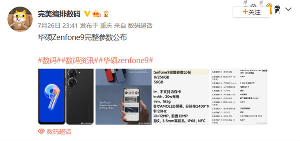 7 月 27 日消息,去年 5 月,华硕发布了 Zenfone 8/8 Flip 两款旗舰手机。在一年多之后,华硕将于 7 月 28 日发布新一代小屏旗舰 Zenfone 9。昨日,有博主曝光了该机的完整配置。