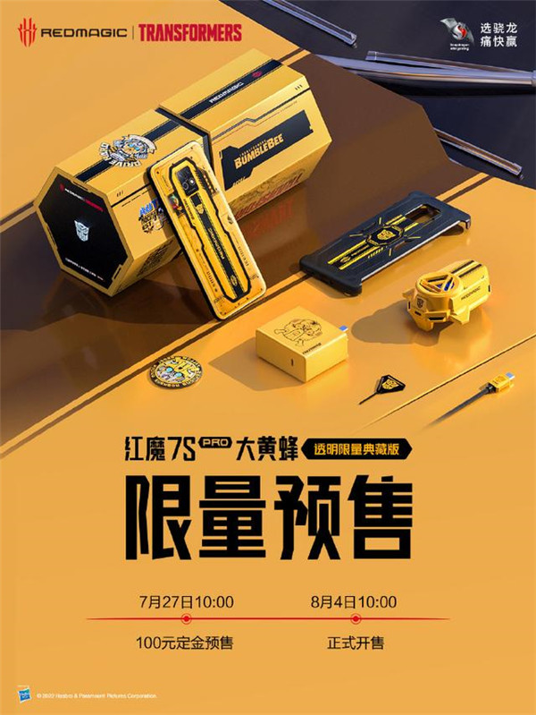 7 月 27 日消息,红魔 7S 系列于 7 月 11 日发布,全系搭载骁龙 8 + 处理器与 Magic GPU 自研稳帧引擎。其中,红魔 7S Pro 大黄蜂限量典藏版将于今日上午 10 点开启预售,并于 8 月 4 日正式开售,售价 6499 元。