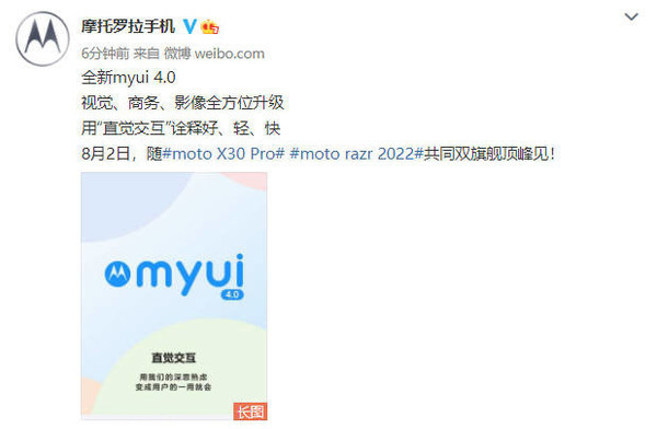 7月22日,摩托罗拉手机发布了全新myui 4.0系统。新系统在视觉、商务、影像方面全方位升级,将于8月2日随moto X30 Pro、moto razr 2022同步亮相。现在我们一起来了解一下。