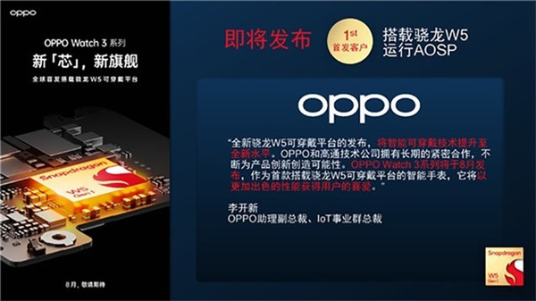 据了解,OPPO计划在8月推出的OPPO Watch 3将会首发搭载W5平台,然后出门问问新一代的TicWatch首发 W5+,这款智能手表将在今年秋季正式亮相。