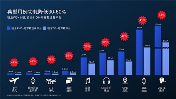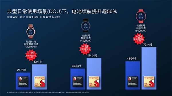 并且,骁龙 W5 / W5+ Gen 1 芯片将支持 Google Wear OS、Android 系统和 RTOS 系统等操作。按照官方说法,骁龙W5+对比骁龙4100+,整体性能提升2倍以上,功耗仅降低超过50%,功能特性也丰富了2倍以上。