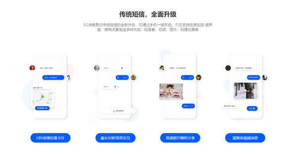 这是基于5G打造的全新的短信系统,能够实现图文并茂的效果,能在手机自带的短信界面,实现类似于微信公众号的使用体验,比如厂商的宣传、用户的一键服务等等。