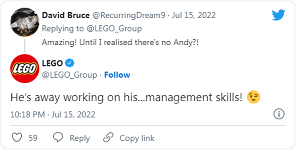 一些粉丝可能对 Andy“Nard Dog”Bernard 的缺席感到有些遗憾,但乐高官方 Twitter 账号幽默地表示他正努力提升(愤怒)管理技能。