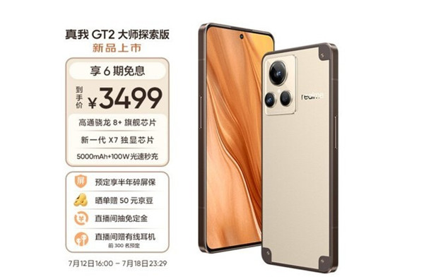 业内第二款骁龙8+旗舰机真我GT2大师探索版将于明天正式首销,共有三个配置:8GB+128GB售价3499元;8GB+256GB位3799元;12GB+256GB顶配版售价3999元,而且还有三款颜色可选,相比小米12S Pro要便宜不少。