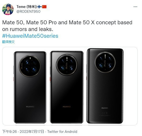 近日,数码博主@RODENT950曝光了基于此前传言的Mate 50、Mate 50 Pro 和 Mate 50 X、Mate 50 RS渲染图。