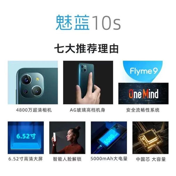 外观上,魅蓝10s采用6.52英寸LCD刘海屏,1600 x 720分辨率,60Hz刷新率。主摄4800万像素,200万像素辅摄,为凑够三摄还加了一个30万像素镜头。